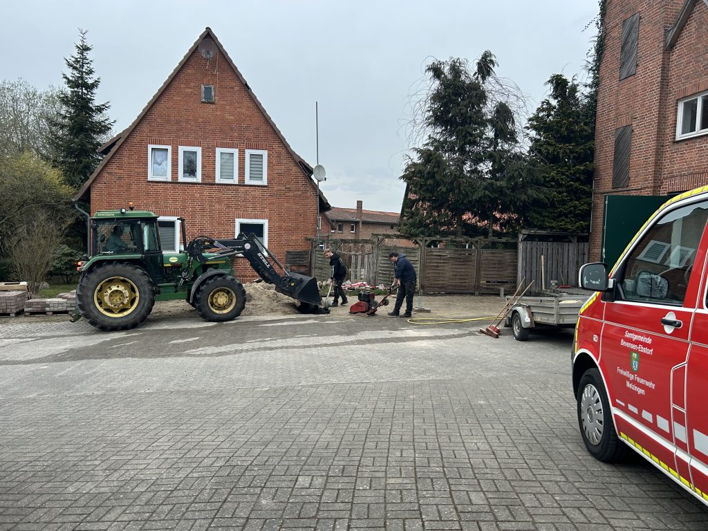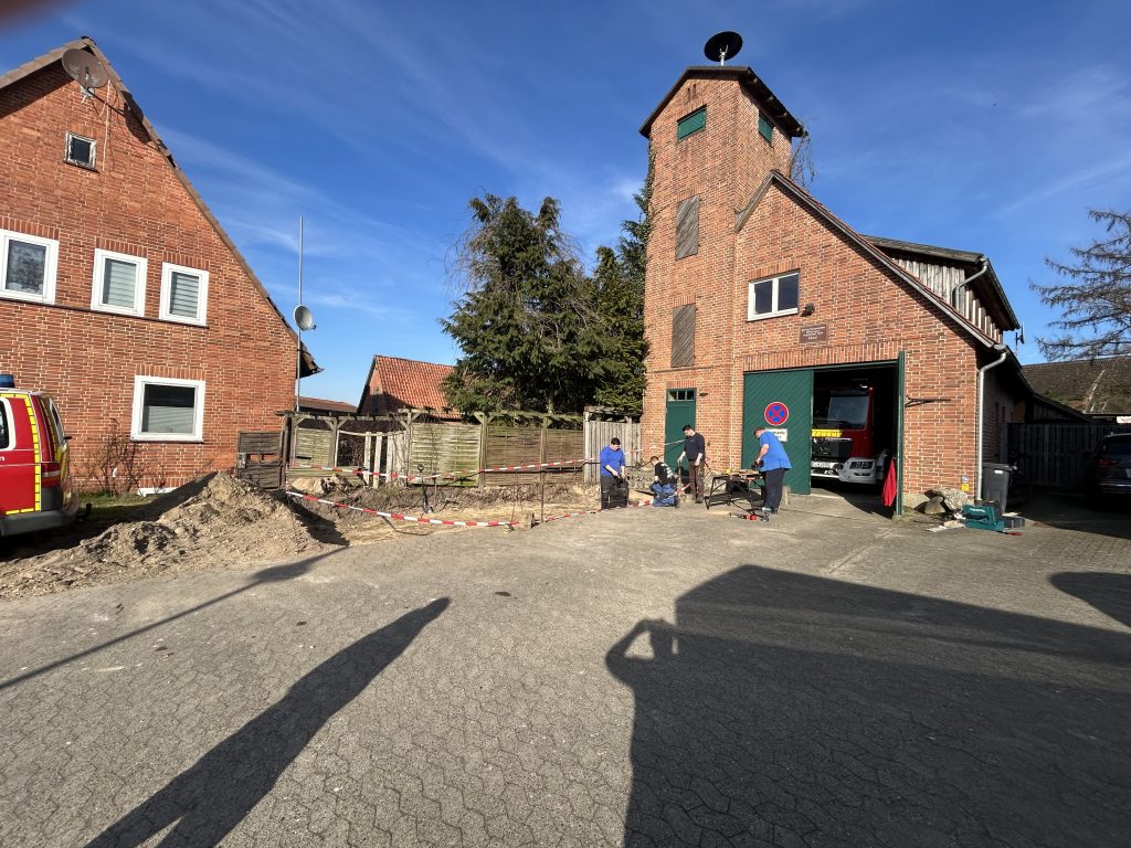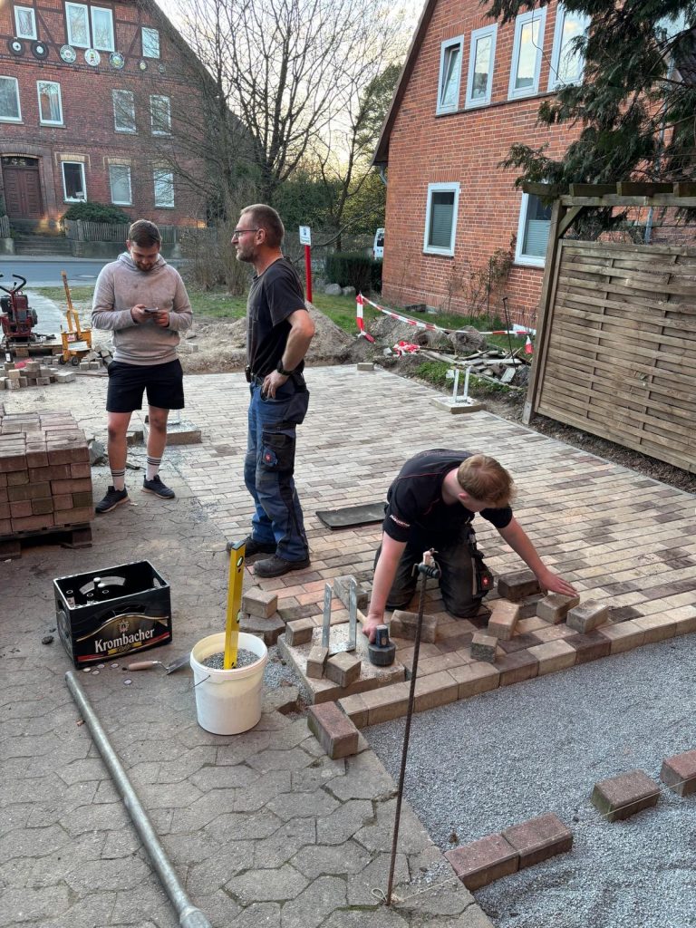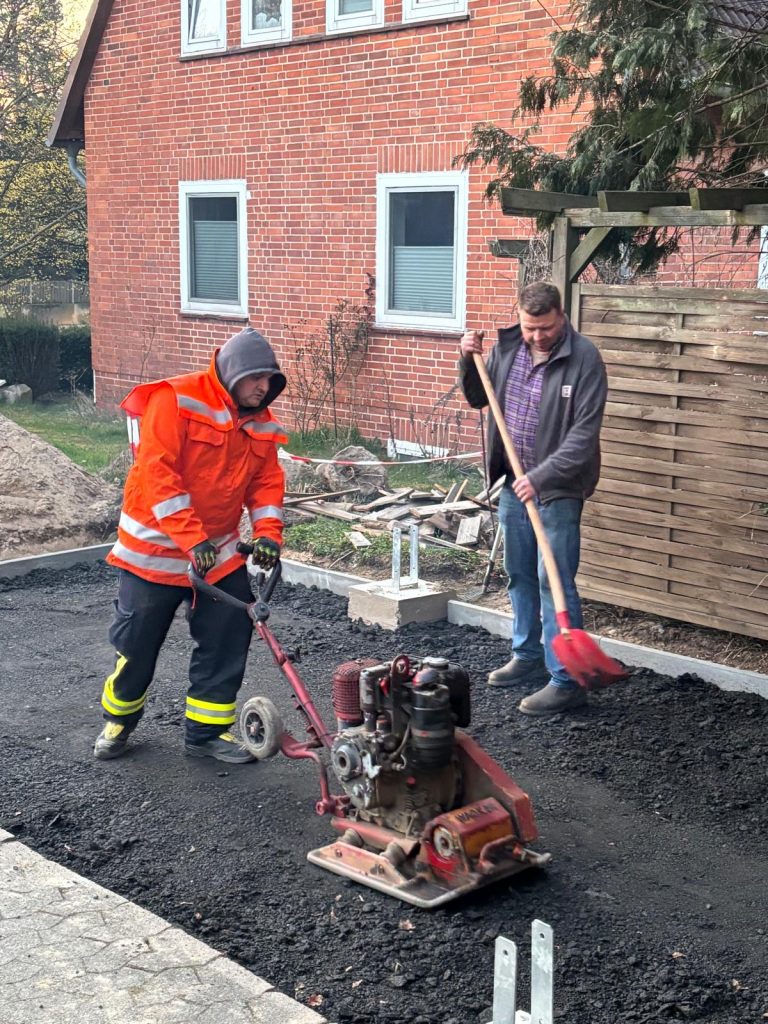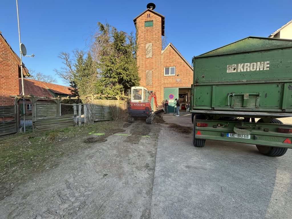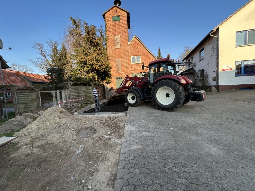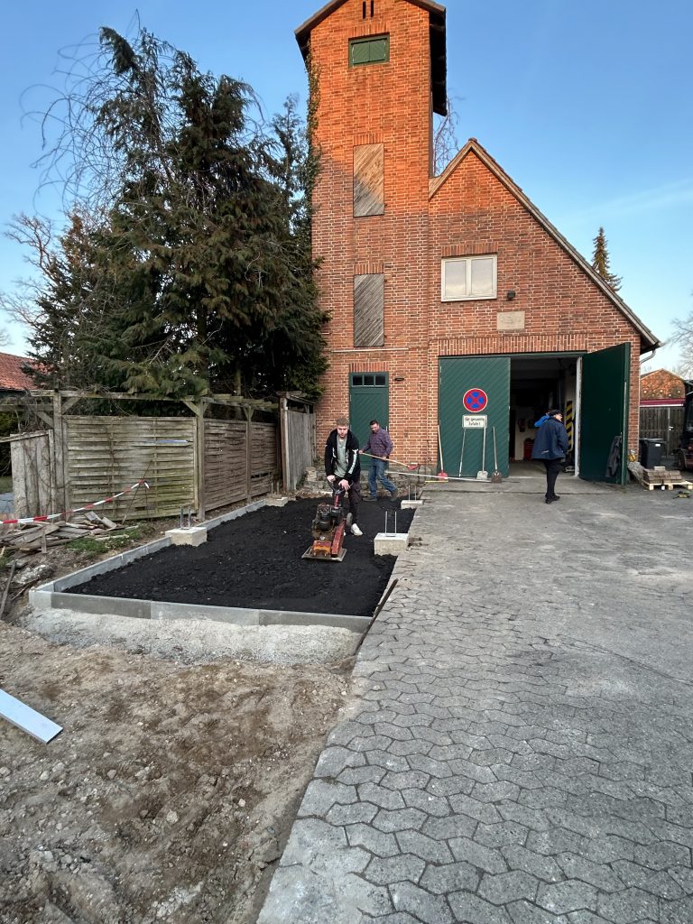 Einen großen Dank geht an unseren Kameraden Michi Burmester, der die Pflastersteine und die Bagger-Kosten gespendet hat. Sowie an die Kameraden Joachim Oelze, Christoph Bauck, Steffen Dierks und Manni Reiter, die uns mit Frontlader, Gabelstapler, Rüttelplatte, Abbruchhammer usw. ausgeholfen haben.
