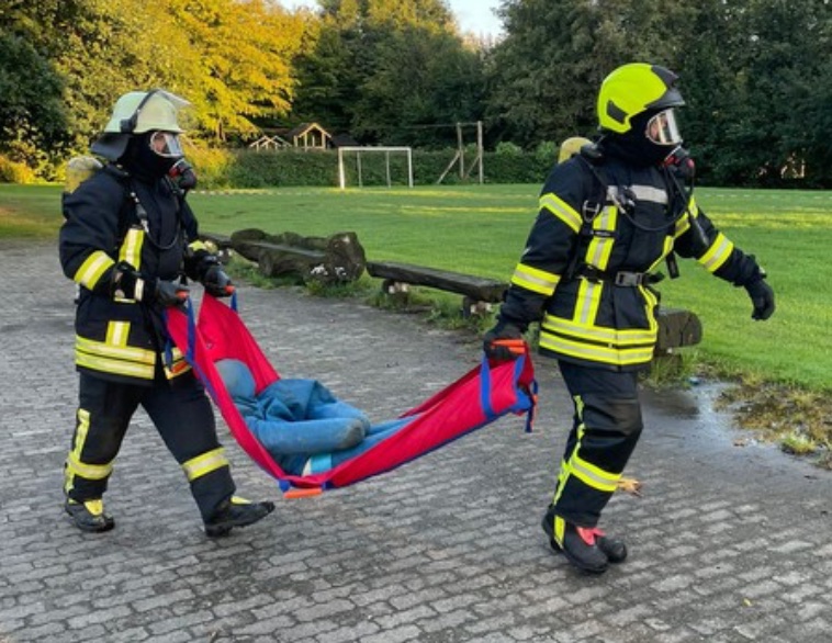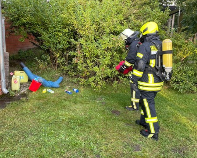 Die ersteintreffende Ortsfeuerwehr Melzingen konnte bei der Erkundung feststellen, dass sich 2 verletzte Personen, eine davon bewusstlos, in Nähe von Gefahrstoffen aufhielten und leitete erste Maßnahmen nach der Gams-Regel ein.
